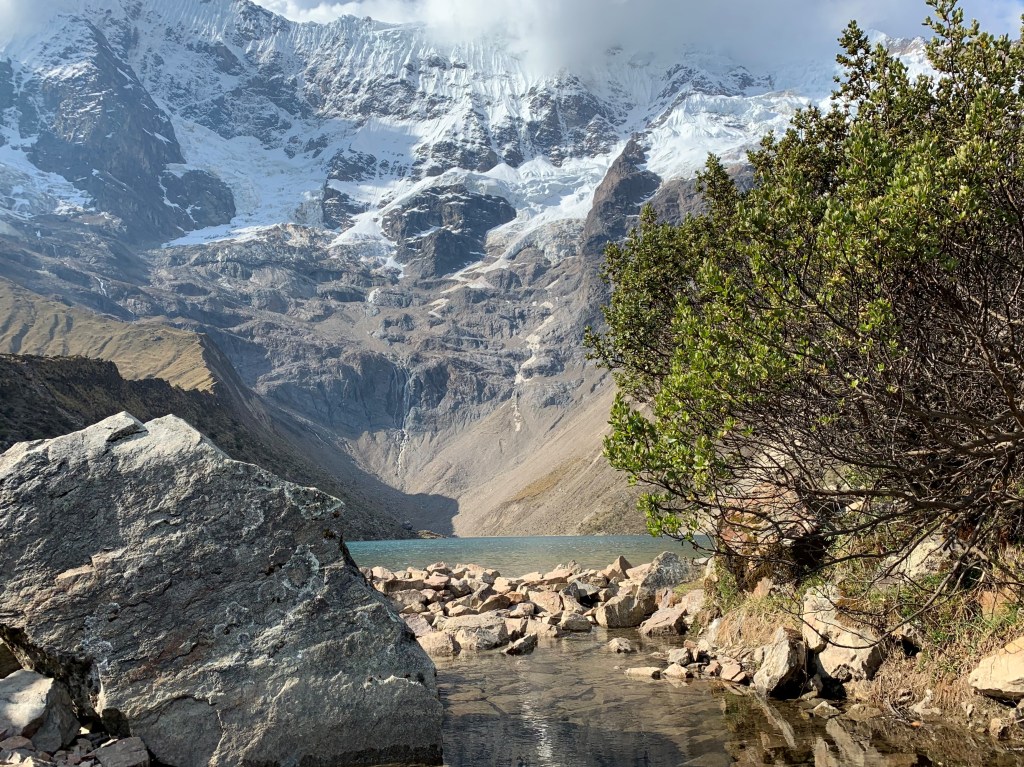 As I arrived at the pass, the sparkling glaciers of Nevado Salkantay Mountain stopped me in my tracks. The contrasting moonscape that surrounded me was barren and drab. I tried to breathe. This was day 2 of our 5-day trek to Machu Picchu. We chose this trek for better views and to experience its 15 ecosystems, as well as to avoid the crowds and mandatory guide on the Inca Trail. The Salkantay is gaining notoriety, but only felt crowded during this short morning stretch to the pass.